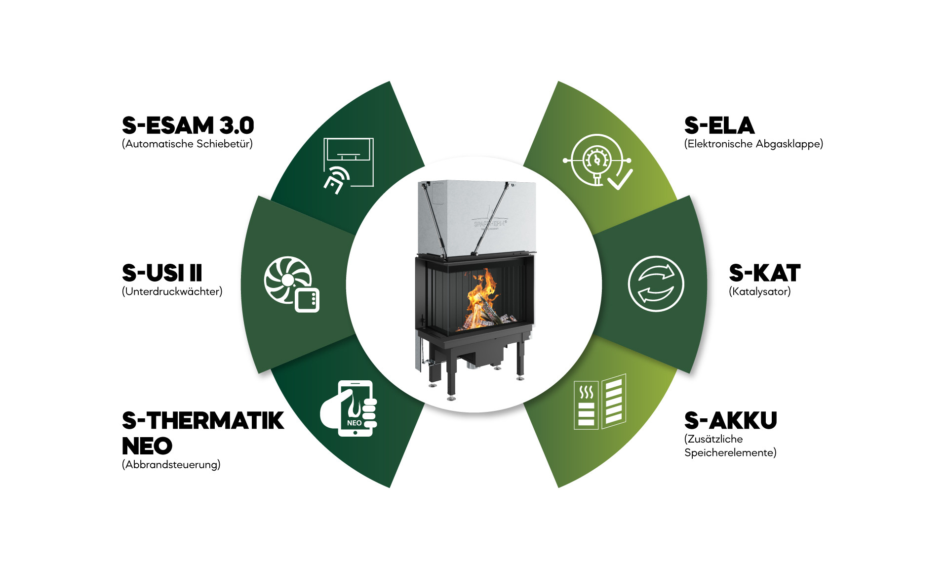 | S-THERMATIK NEO & S-THERMATIK NEO BASIC regeln den Abbrand vollautomatisch. Die Luftzufuhr wird optimal auf die Brennstoffmenge und Temperatur abgestimmt - für eine gleichmäßige, saubere Verbrennung bei minimalem Holzverbrauch. |